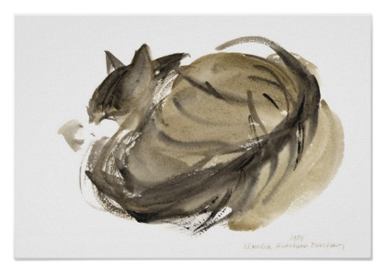 French artist Claudia Hutchins-Puechavy paints these beautiful, flowing watercolor portraits of cats. The familiar everyday poses are instantly recognizable and are sure to delight any cat lover.