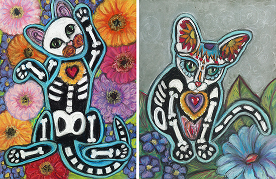 Artist Ann Marie Hoff created All Souls Day Kittenz, a collection of colorful portraits that commemorate kittens she has fostered, all drawn in the style of the day of the dead. Prints are available from her website AnnHoff.com.