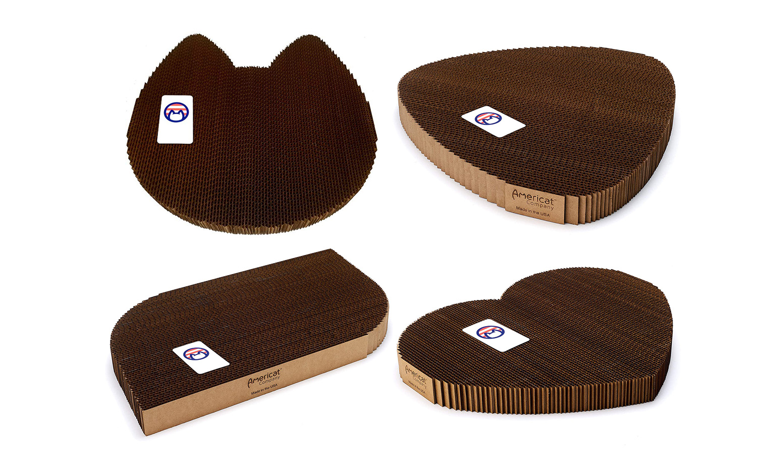 Americat cardboard scratchers are available on Amazon and from the Americat Etsy shop.