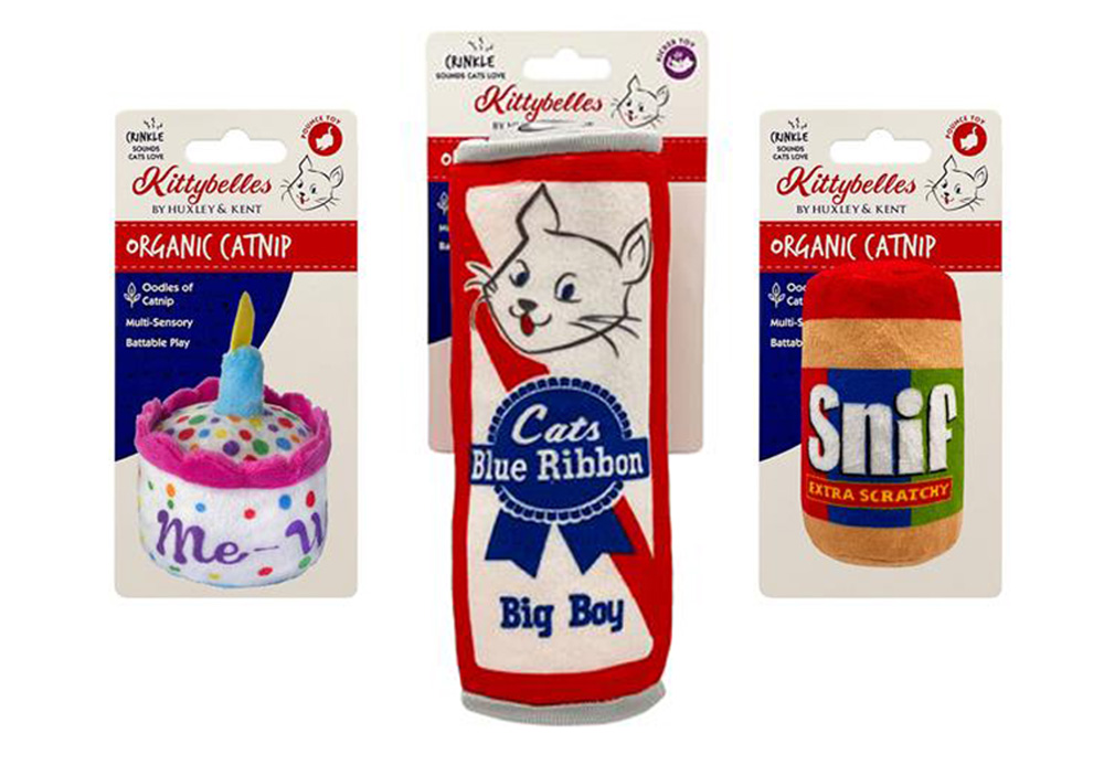 Choose from Me-wow Catnip Cake, Snif Extra Scratchy Peanut Butter, and Cats Blue Ribbon Big Boy. Just think of the silly photo ops! All are available from MyThreeCats.com.