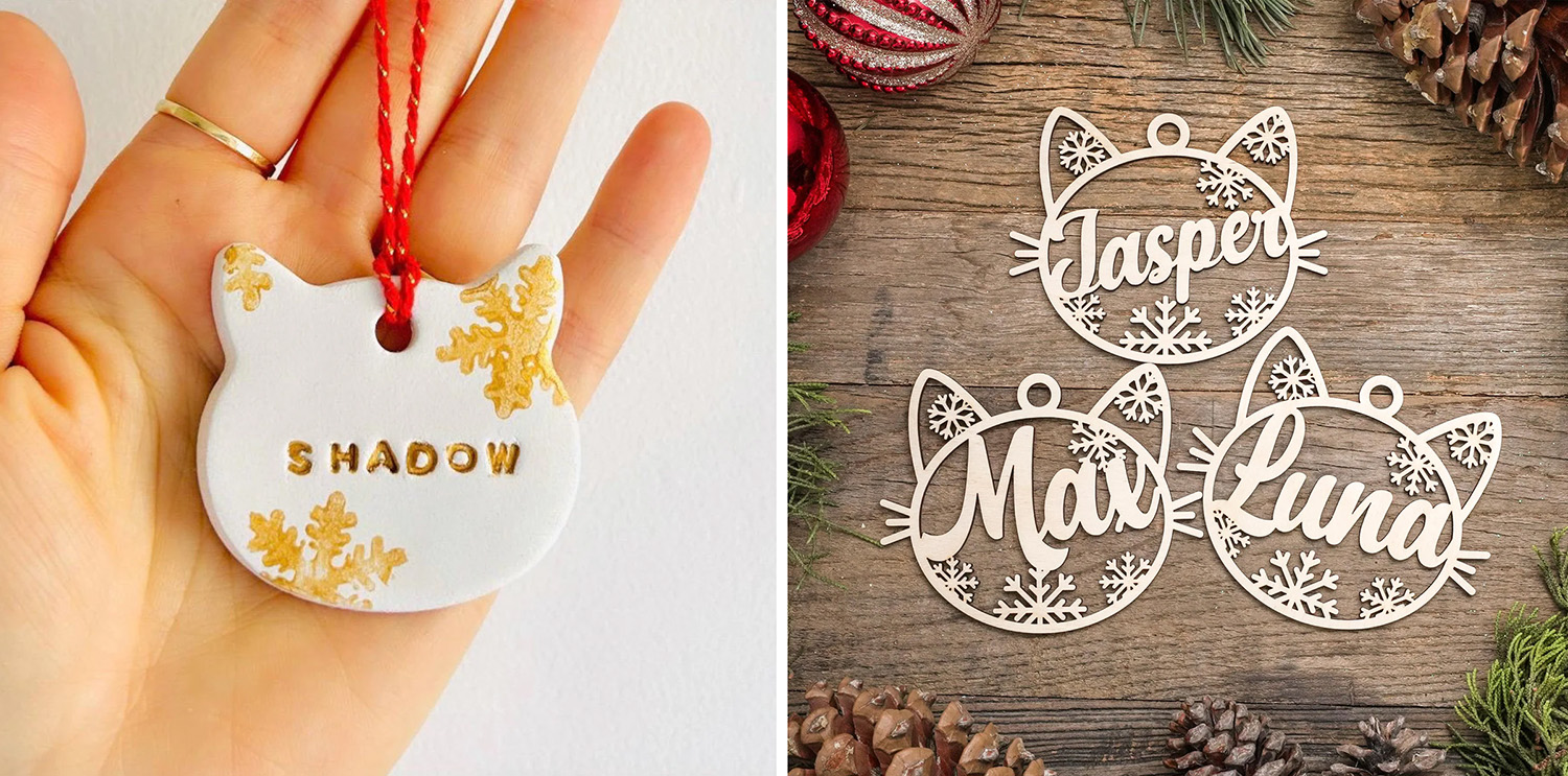 Commemorate the holiday with one of these personalized ornaments with your cat’s name on it:
