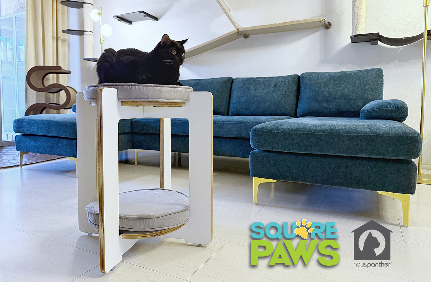 Each BÜNK is handcrafted at the Square Paws studio in Florida and carefully packaged for shipping to you. Ships flat with some assembly required. Choose teal or grey cushions to coordinate with your decor. Available now from shop.hauspanther.com and keep an eye out for more fun collabs with Square Paws coming soon!