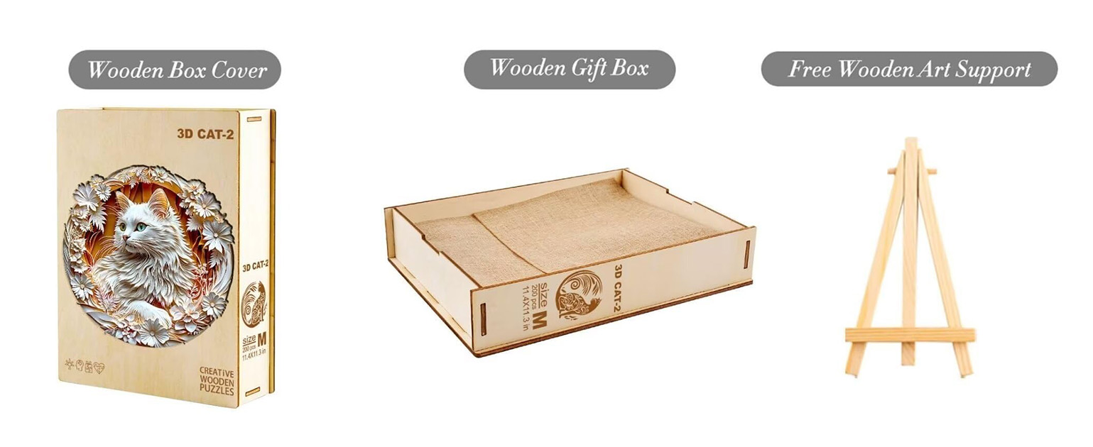 Available in a variety of designs and three different sizes. Each puzzle comes in a wooden gift box with a color image on the cover and a free wooden stand to hold the cover while you work on the puzzle.