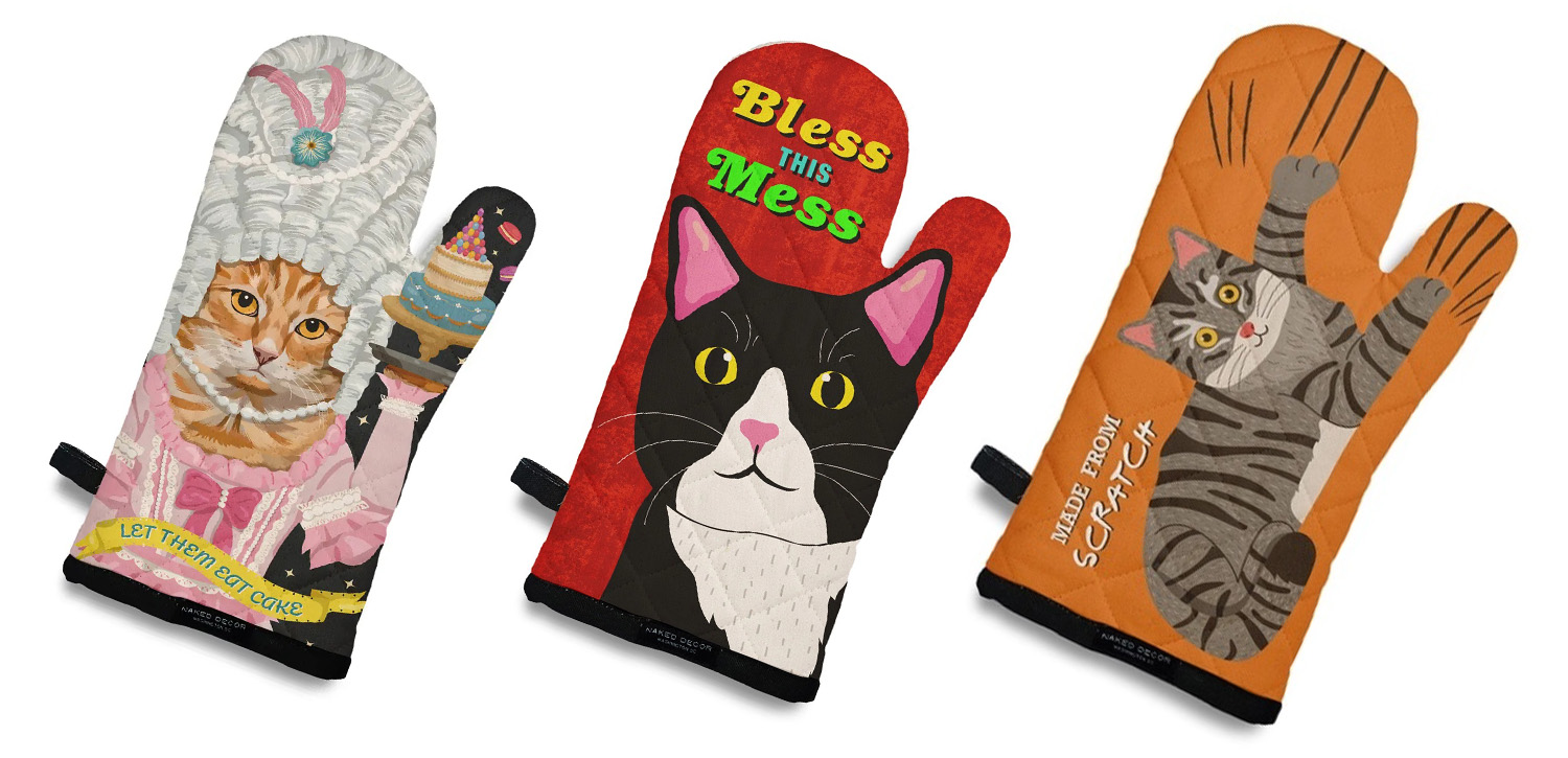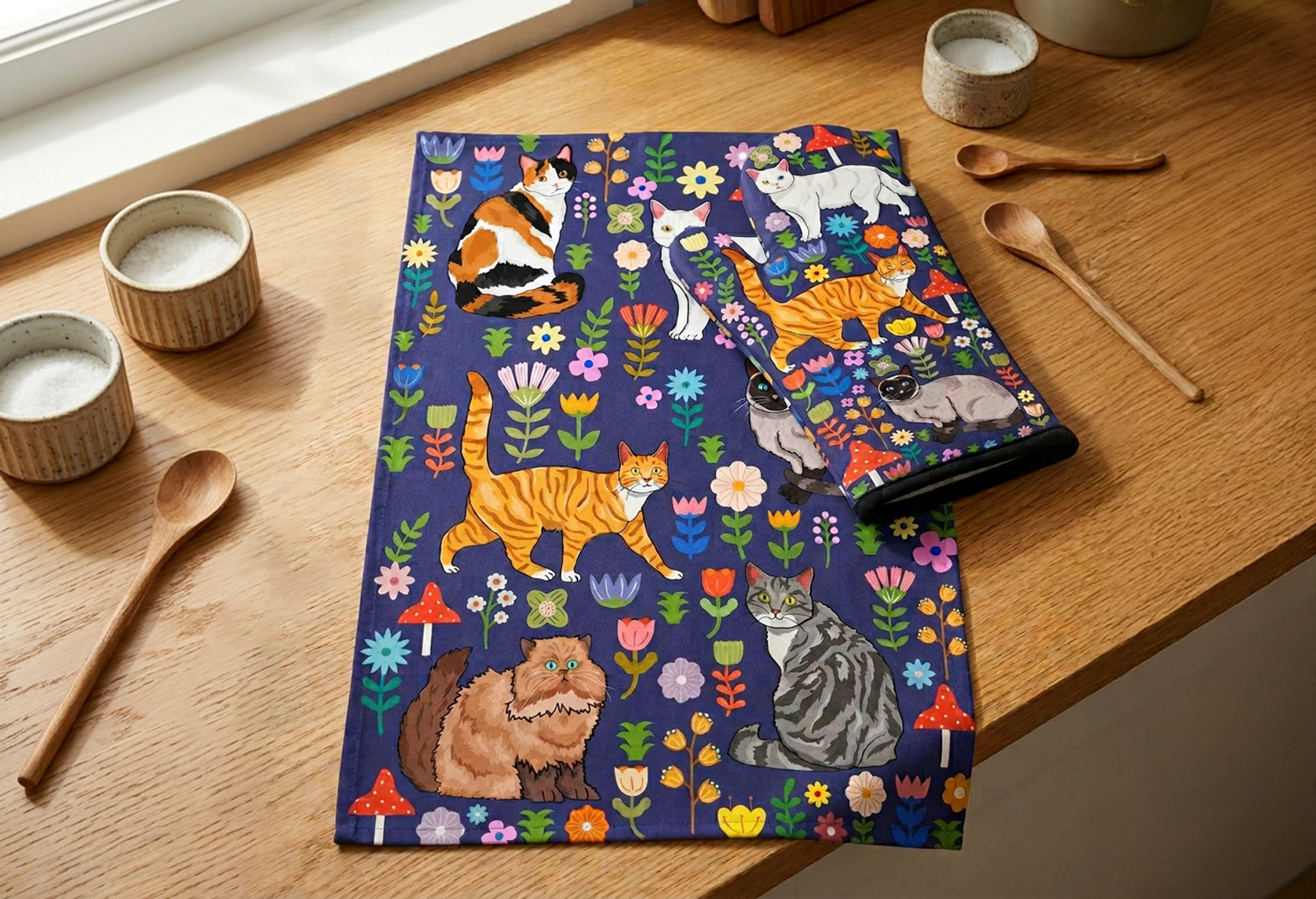 Cat lovers know that feline style belongs everywhere in the home, including the kitchen. These colorful cat-themed oven mitts, potholders and tea towels add personality and a little extra joy to meal prep.