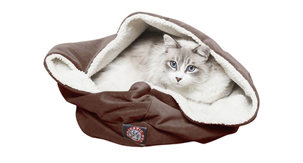 This ultra-mod kitty hideaway is from London-based industrial designer Onur Ozkaya. Made of polished fiberglass, the sleek pod can either rest on the floor or perch atop a streamlined stainless steel base, creating the perfect raised perch for a cat…