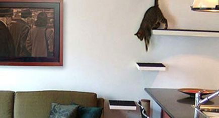 Karen sent in photos of this fabulous cat-friendly installation in her office which she has dubbed the “CubiCat.” It was created with Cubitec shelving, a completely modular system that allows you to configure a variety of levels and depths. Karen assembled the…